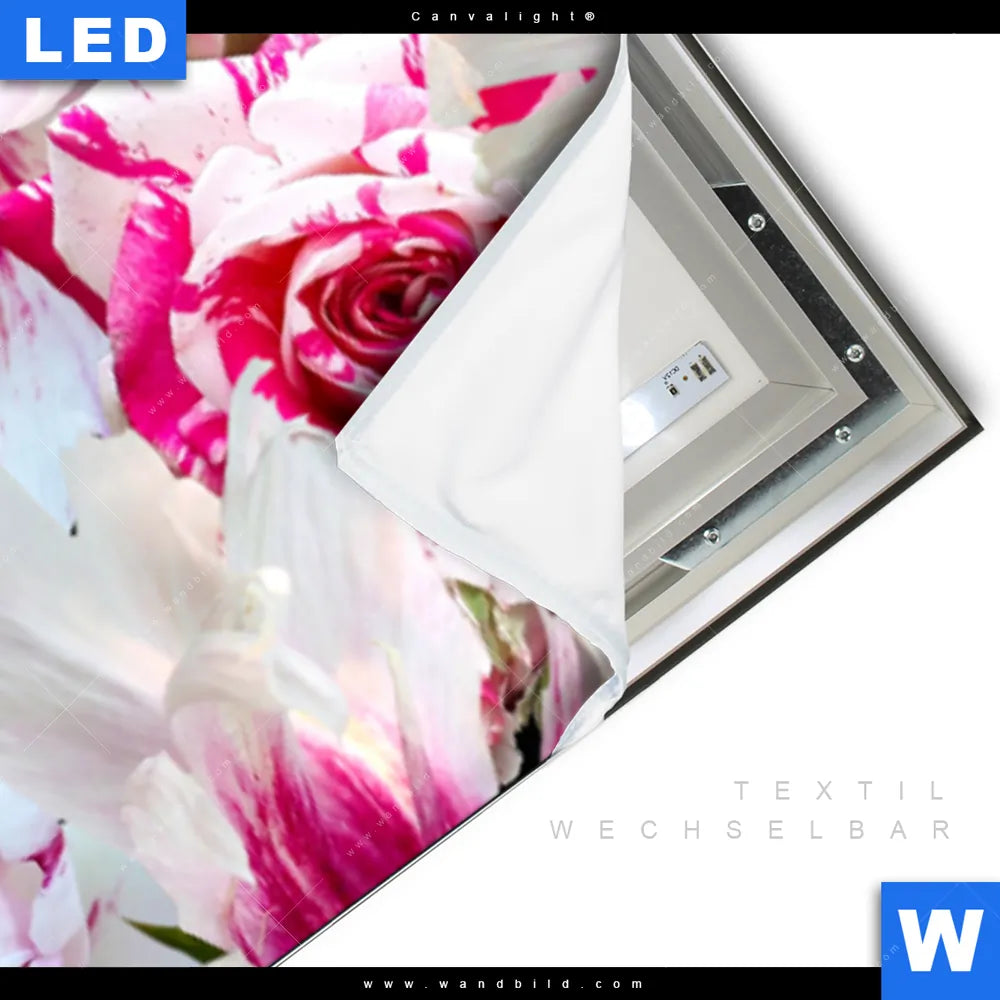 LED-Textilrahmen-Bild mit austauschbarem Blumen - Botanik Textil-Druck (Wechselbild)