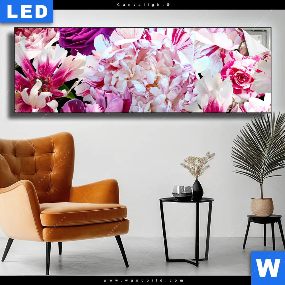 Canvalight® TEX Leuchtbild | Blühende Pfingstrosen | Panorama
