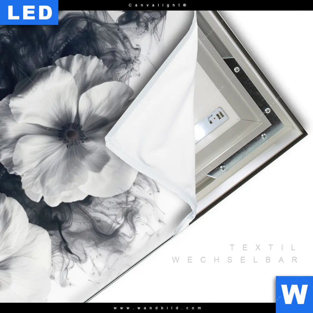 LED-Textilrahmen-Bild mit austauschbarem Blumen - Botanik Textil-Druck (Wechselbild)