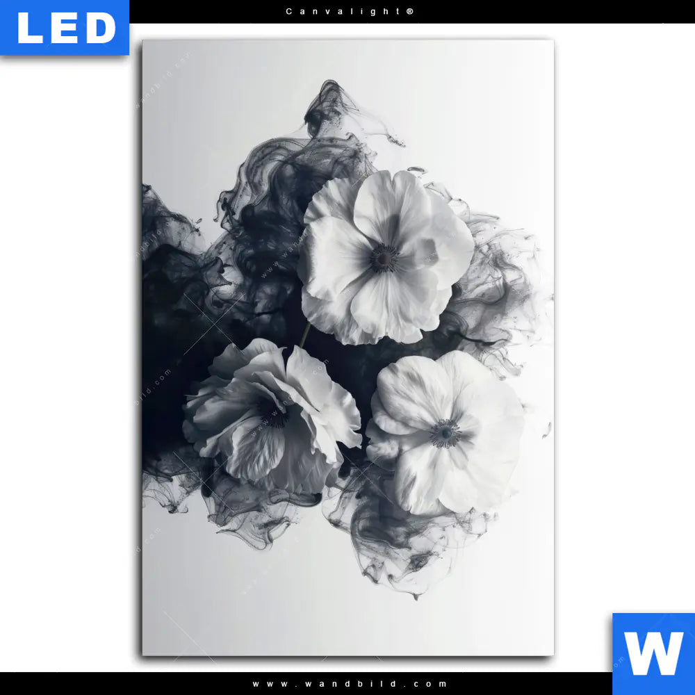 Canvalight® Leuchtbild | Blumen im schwarzen Farbnebel | Hochformat