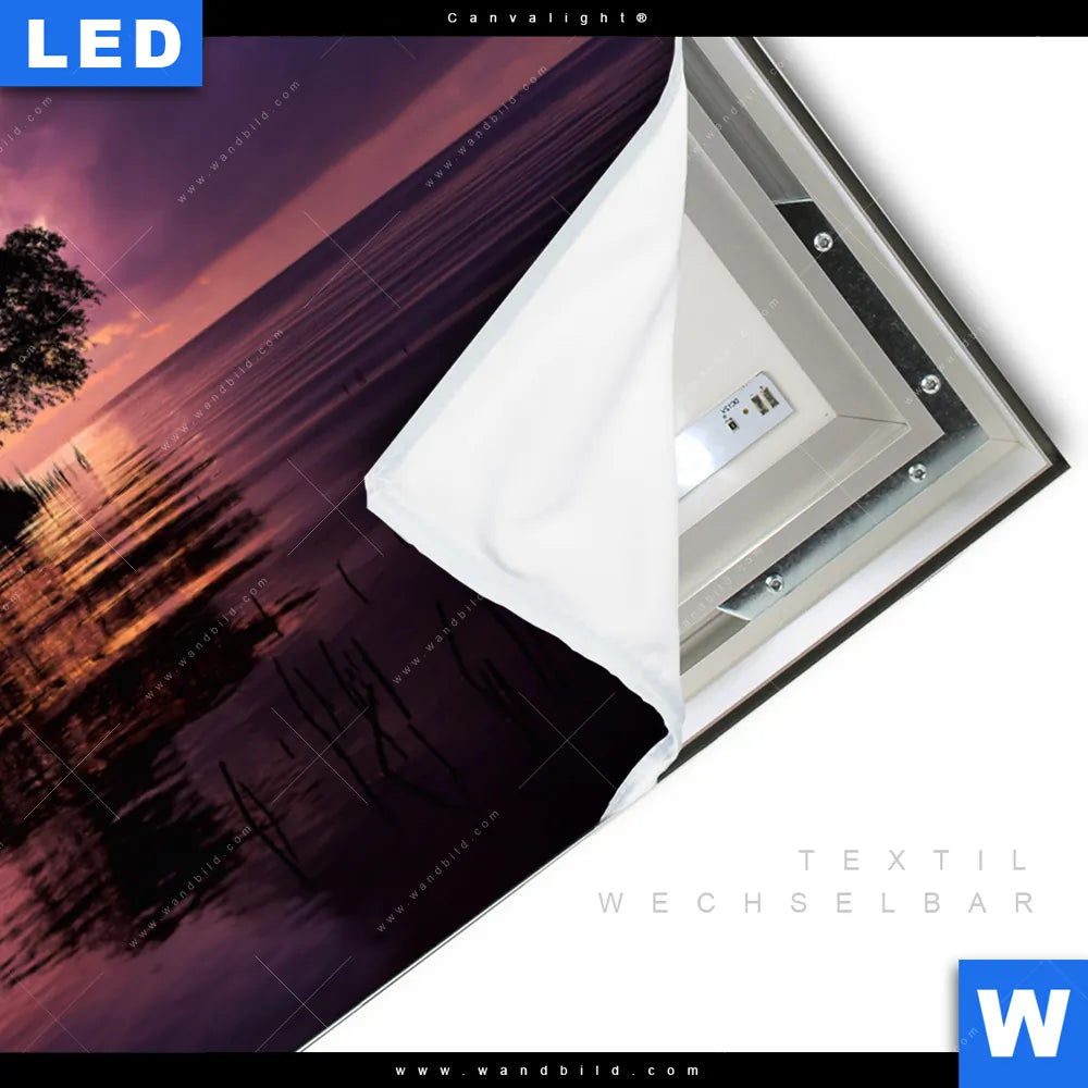 LED-Textilrahmen-Bild mit austauschbarem Landschaften Textil-Druck (Wechselbild)