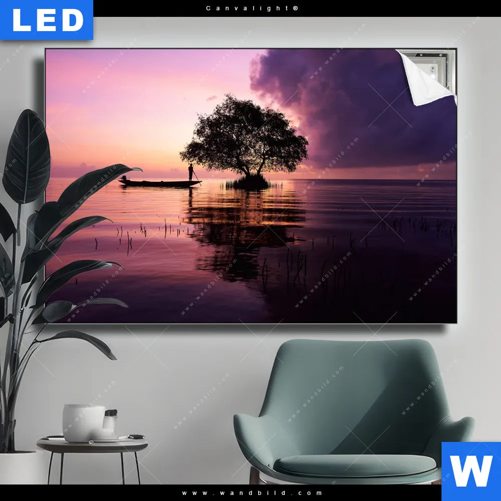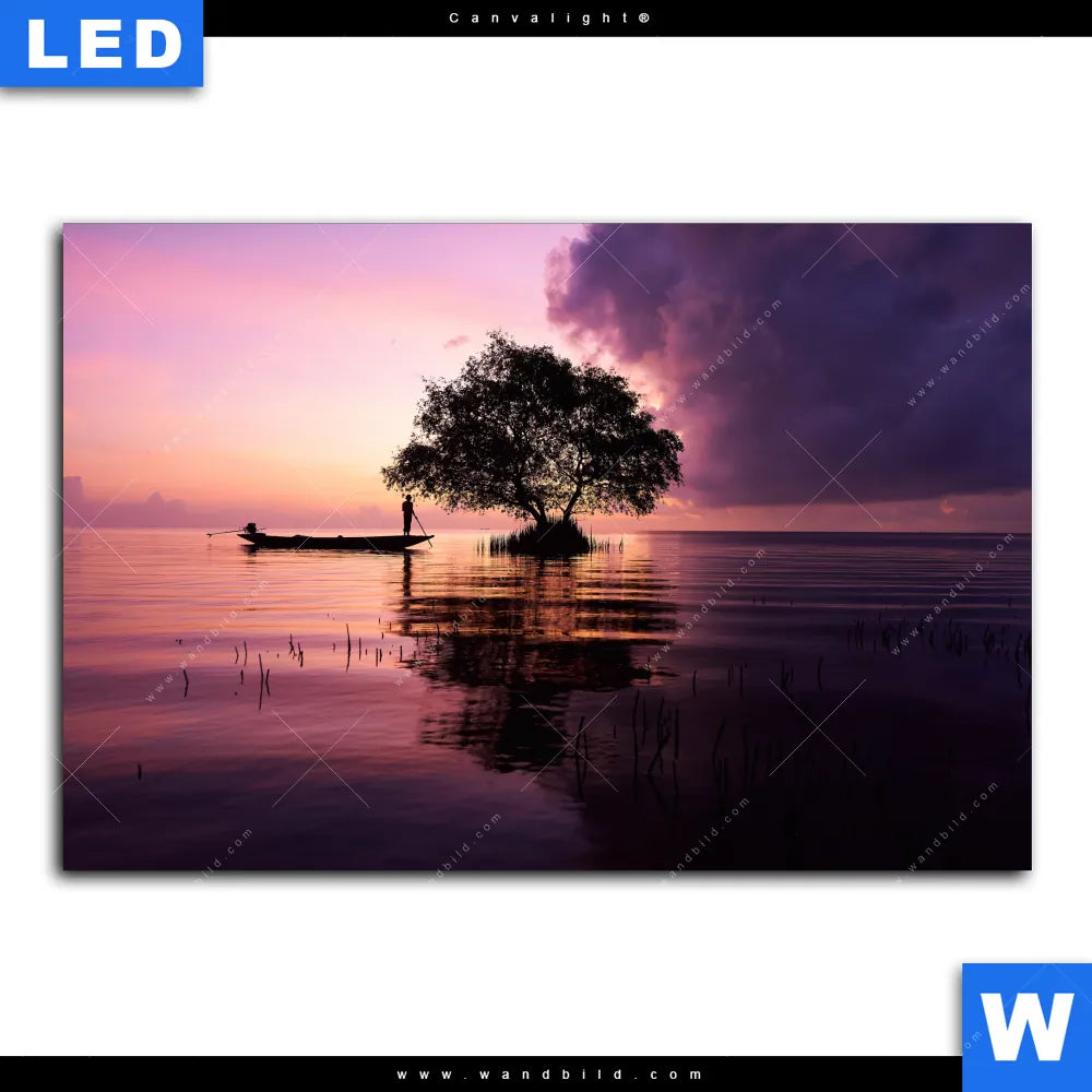 Canvalight® Leuchtbild | Fischer auf Boot Sonnenaufgang | Querformat