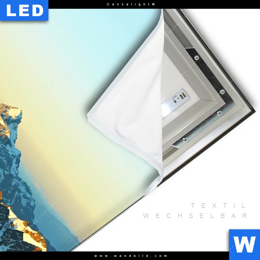 LED-Textilrahmen-Bild mit austauschbarem Landschaften Textil-Druck (Wechselbild)