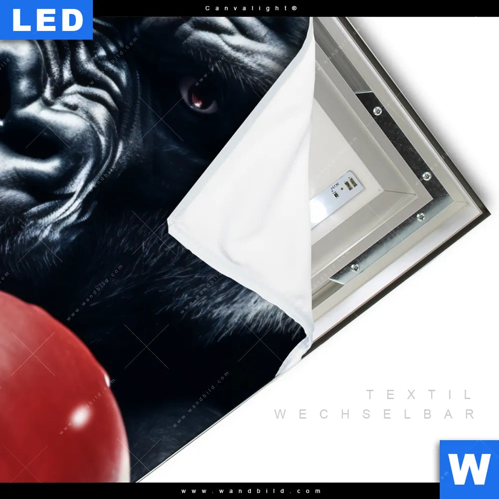 Canvalight® TEX Leuchtbild | Gorilla mit roten Boxhandschuhen | Hochformat