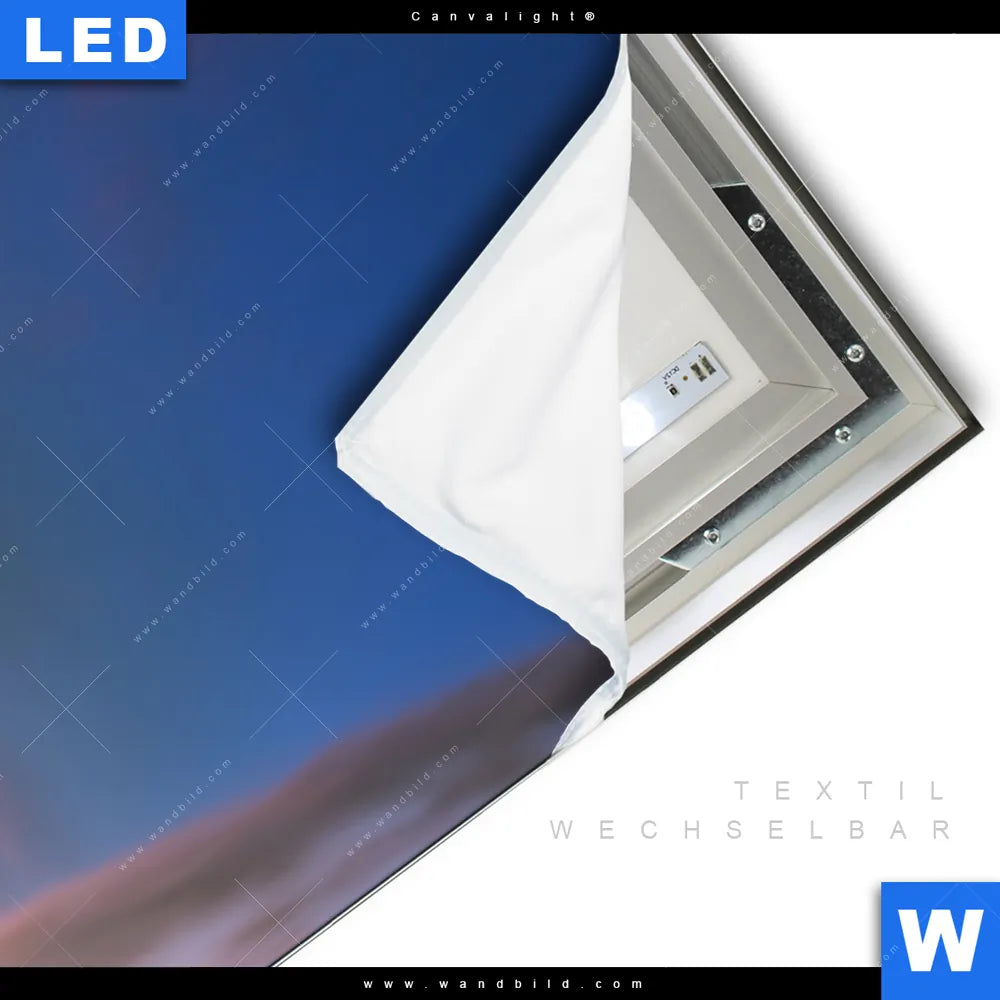 LED-Textilrahmen-Bild mit austauschbarem Landschaften Textil-Druck (Wechselbild)