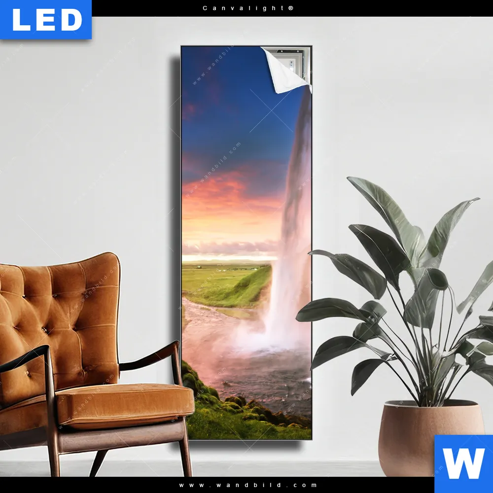 Canvalight® Leuchtbild | Isländischer Wasserfall | Schmal