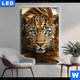 Canvalight® TEX Leuchtbild | Leopard im goldenen Dschungel | Querformat