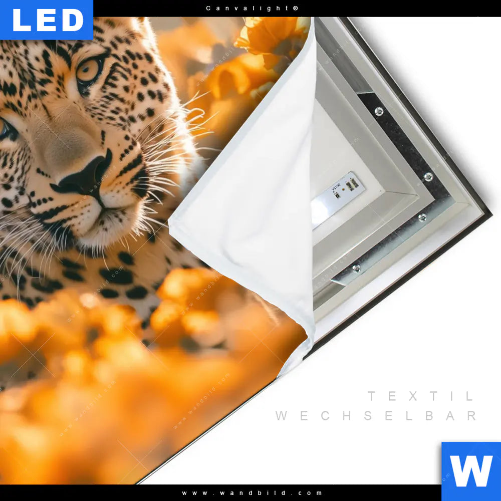Canvalight® TEX Leuchtbild | Leopardentraum in Orange | Quadrat