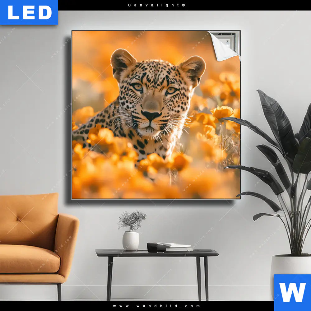Canvalight® Leuchtbild | Leopardentraum in Orange | Quadrat