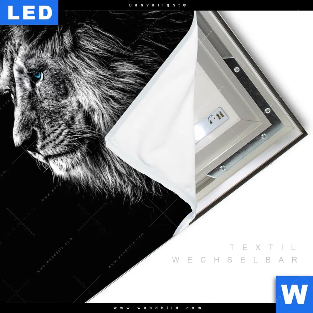 Canvalight® TEX Leuchtbild | Löwe mit blauen Augen | Quadrat