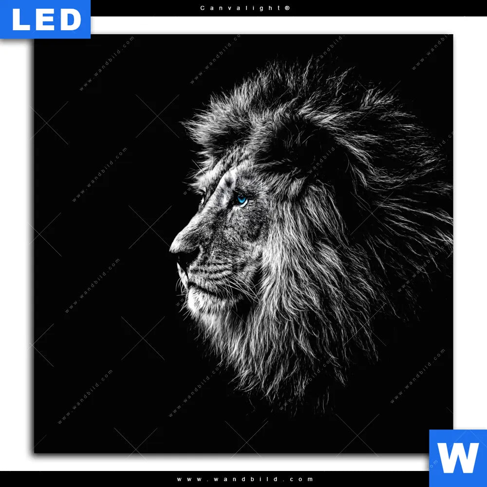 Canvalight® Leuchtbild | Löwe mit blauen Augen | Quadrat