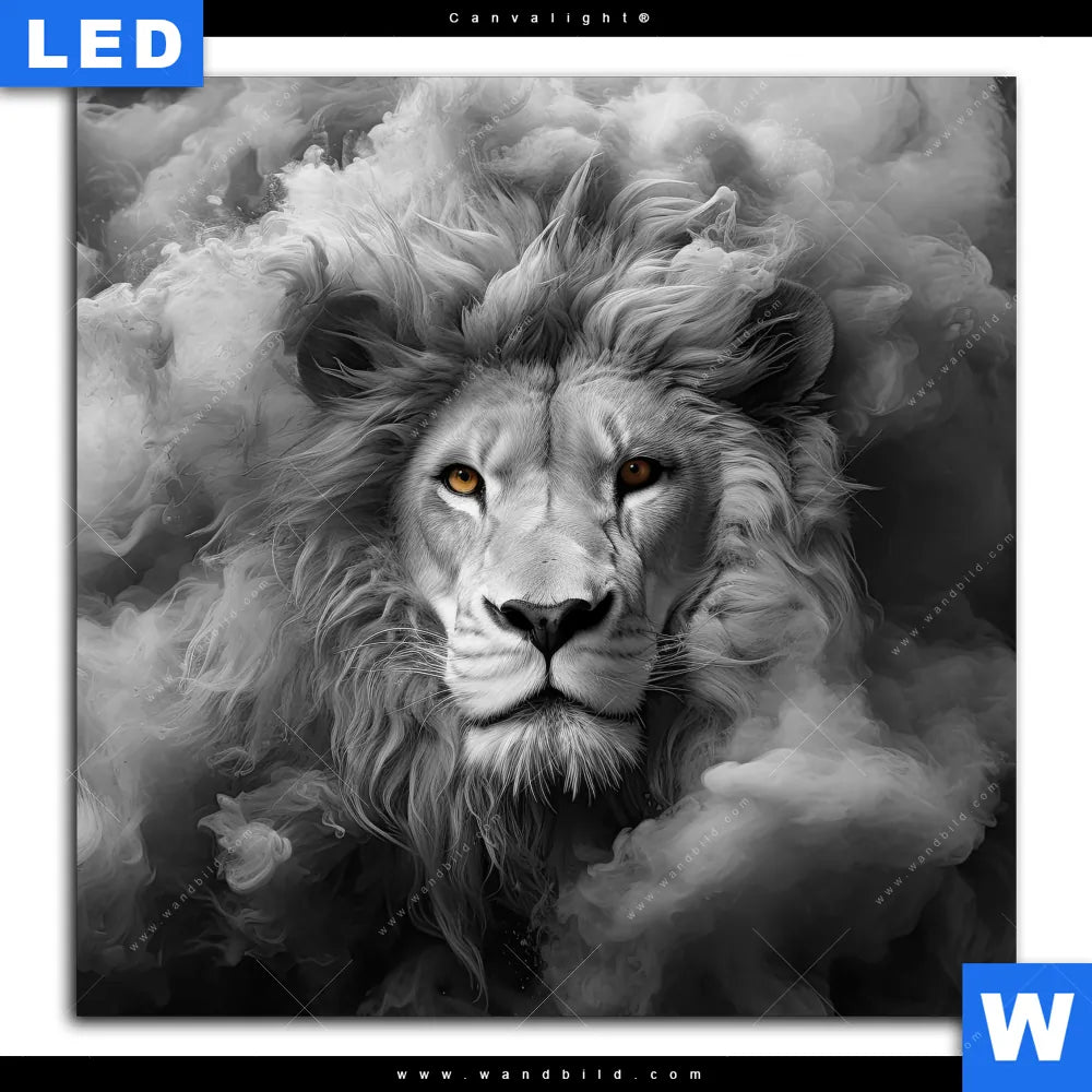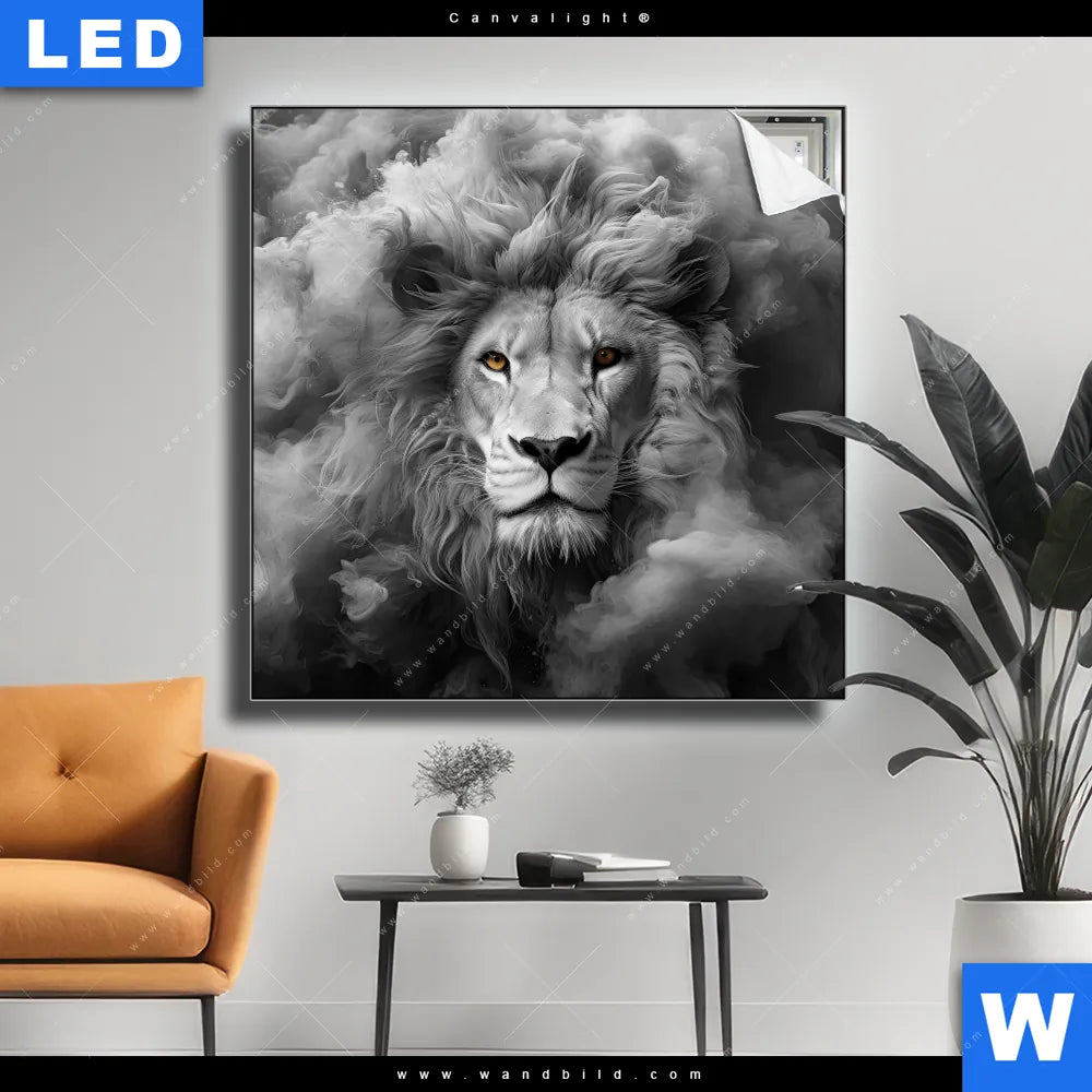 Canvalight® Leuchtbild | Löwengesicht in Rauch | Quadrat