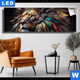 Canvalight® TEX Leuchtbild | Löwenkopf mit bunten Federn | Hochformat