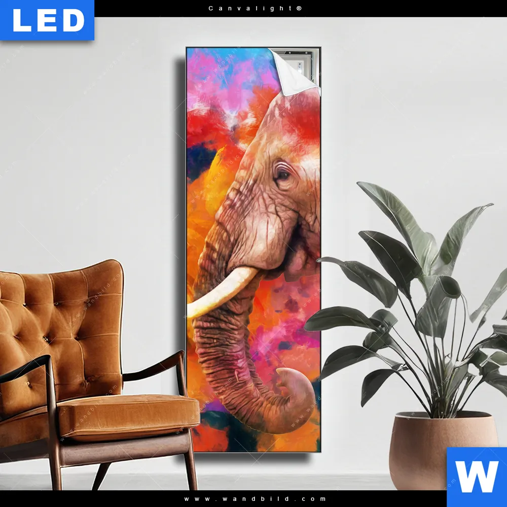 Canvalight® Leuchtbild | Moderner Bunter Elefant | Schmal