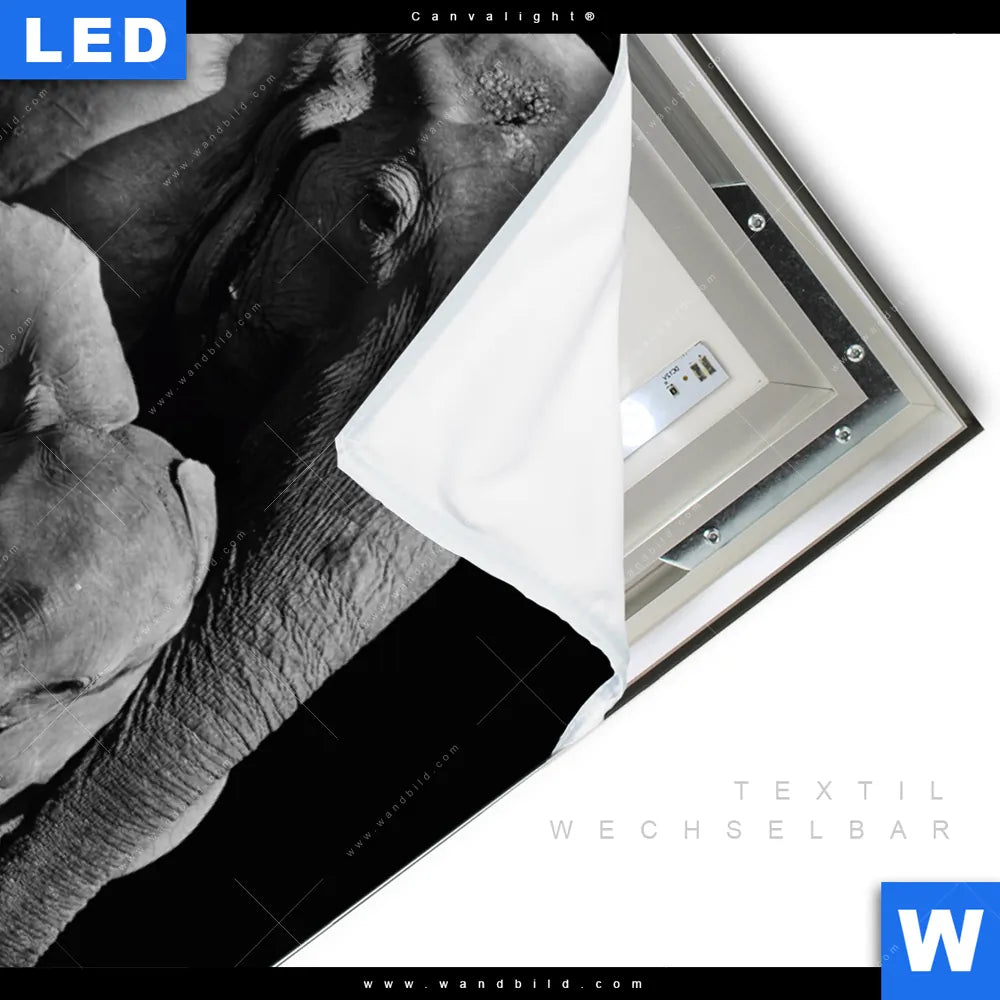 Canvalight® TEX Leuchtbild | Mutter & Baby Elefant | Hochformat