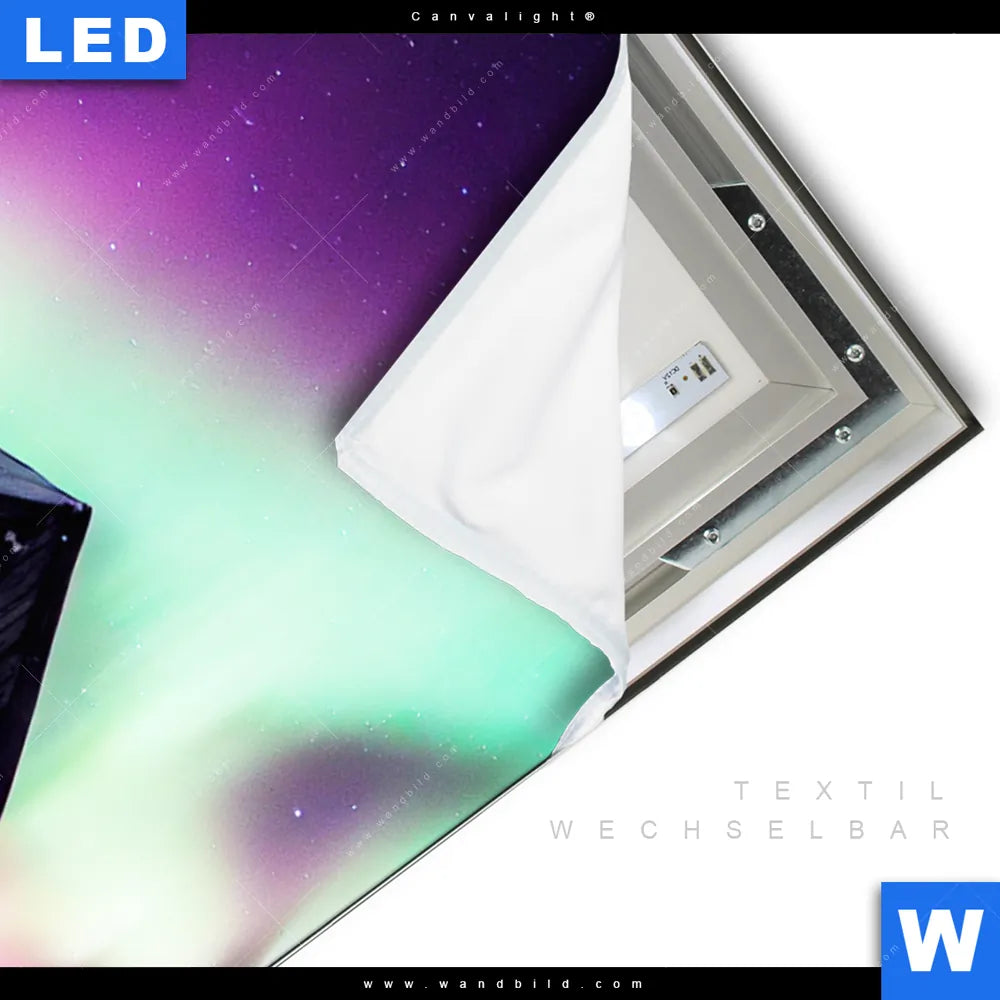 LED-Textilrahmen-Bild mit austauschbarem Landschaften Textil-Druck (Wechselbild)