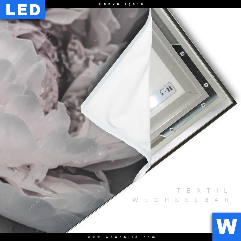 LED-Textilrahmen-Bild mit austauschbarem Blumen - Botanik Textil-Druck (Wechselbild)