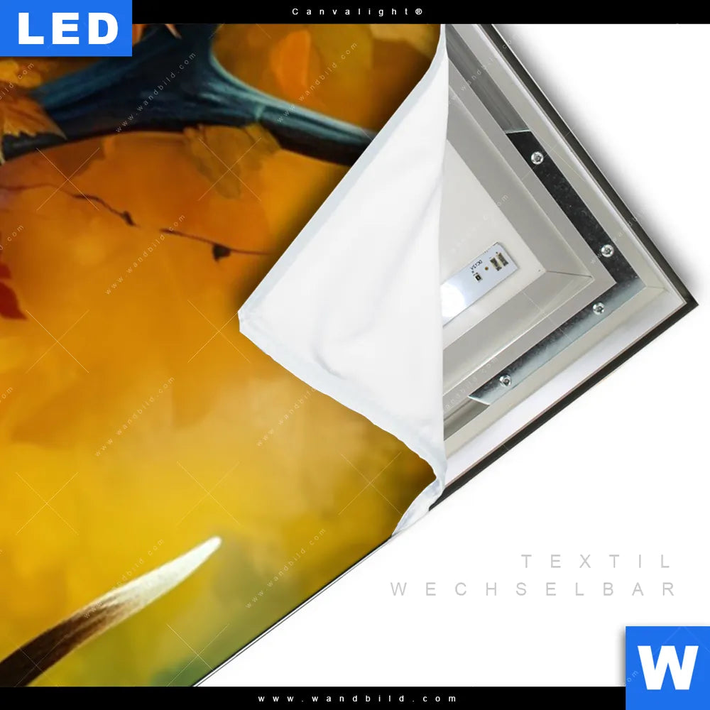 LED-Textilrahmen-Bild mit austauschbarem Tierwelt Textil-Druck (Wechselbild)