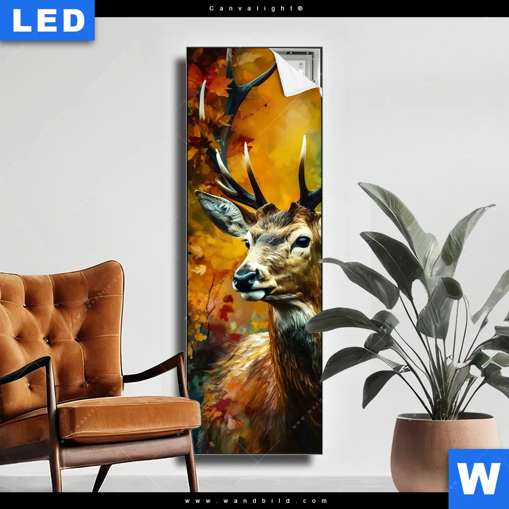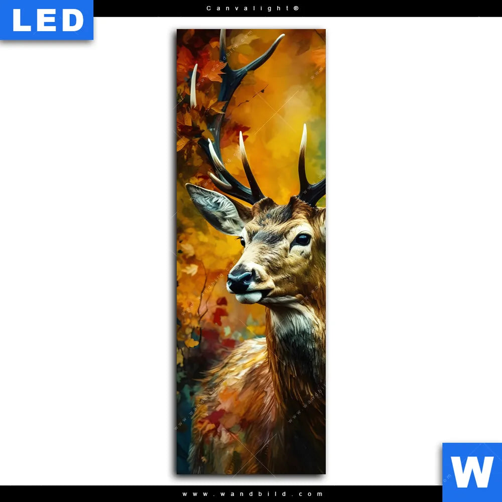 Canvalight® Leuchtbild | Rothirsch im Herbstwald | Schmal