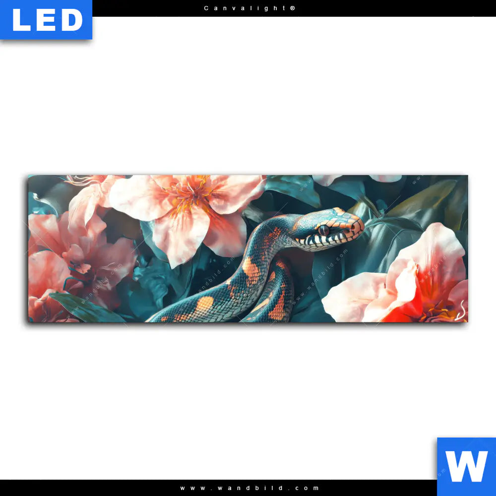Canvalight® Leuchtbild | Schlange zwischen großen Blüten | Panorama