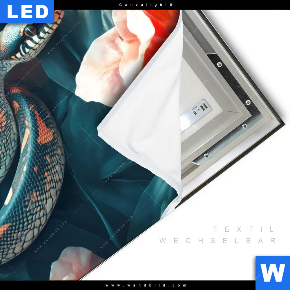 Canvalight® TEX Leuchtbild | Schlange zwischen großen Blüten | Quadrat