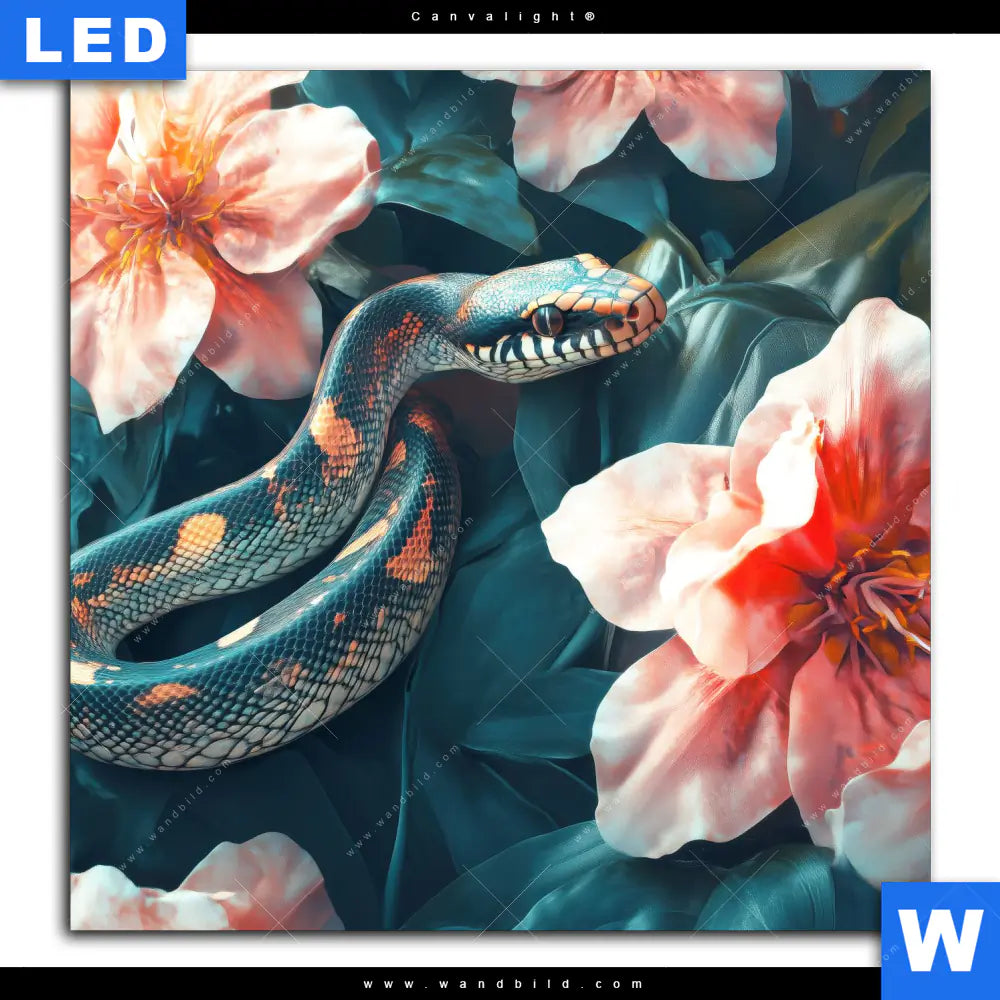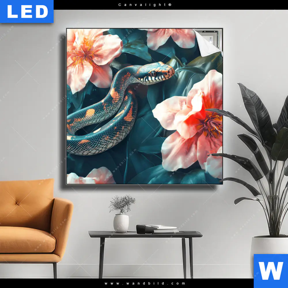 Canvalight® Leuchtbild | Schlange zwischen großen Blüten | Quadrat