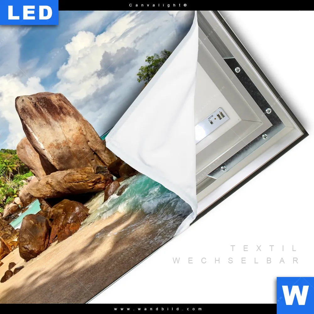 LED-Textilrahmen-Bild mit austauschbarem Landschaften, Strand - Meer Textil-Druck (Wechselbild)