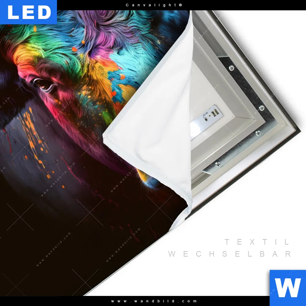 Canvalight® TEX Leuchtbild | Stier mit bunten Farben | Quadrat
