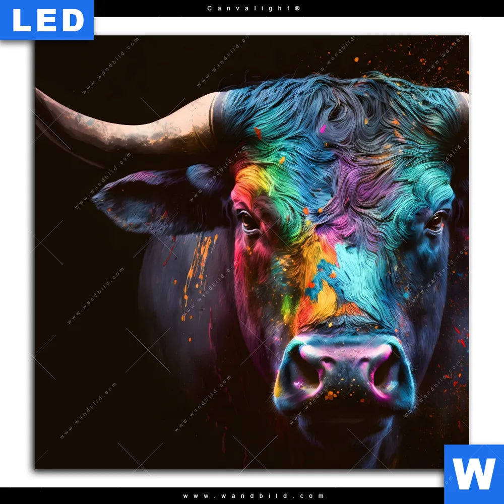 Canvalight® Leuchtbild | Stier mit bunten Farben | Quadrat