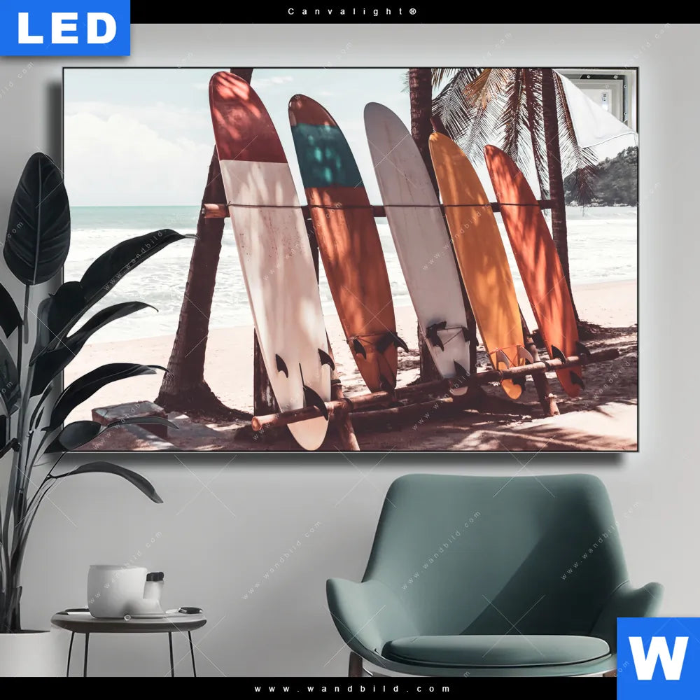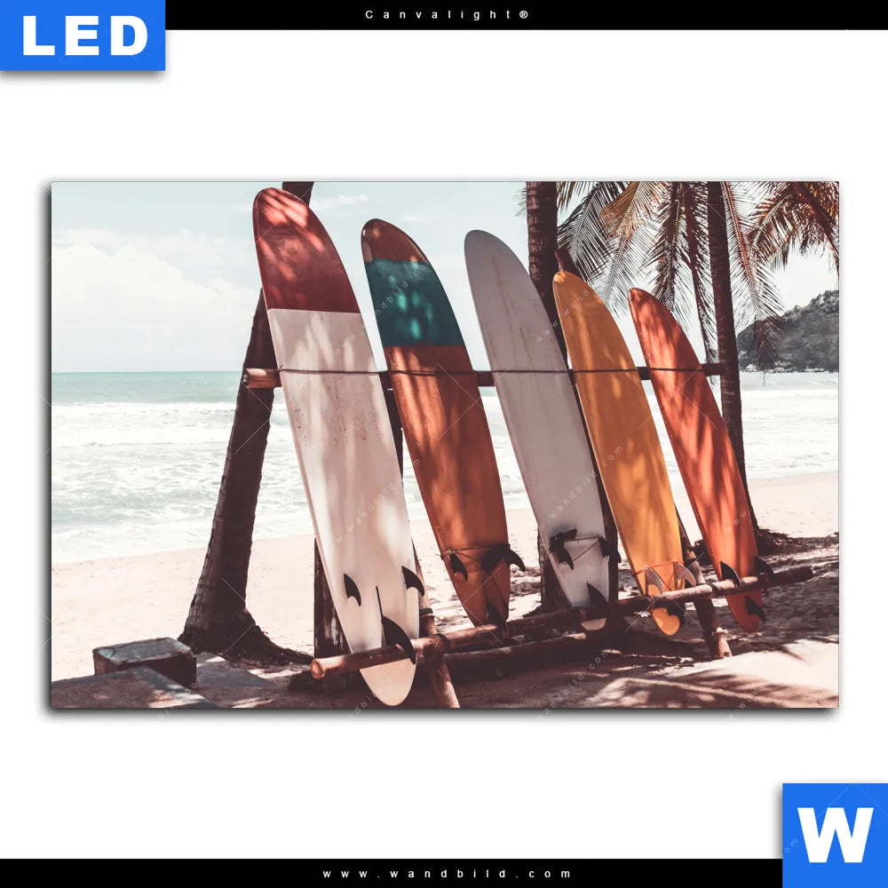 Canvalight® Leuchtbild | Surfbretter und Palmen | Querformat