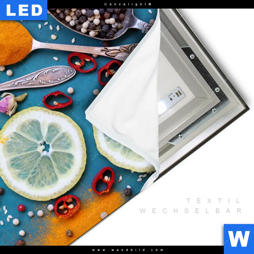 LED-Textilrahmen-Bild mit austauschbarem Essen - Trinken Textil-Druck (Wechselbild)