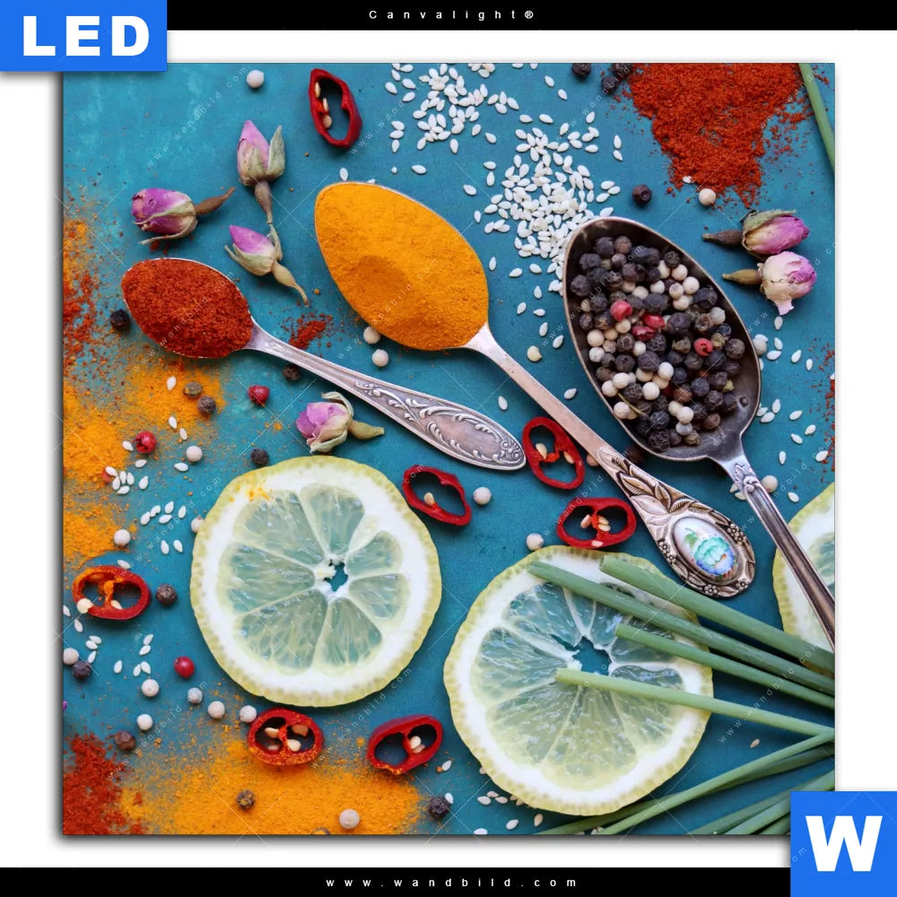 Canvalight® Leuchtbild | Vintage Silberlöffel mit Gewürzen | Quadrat