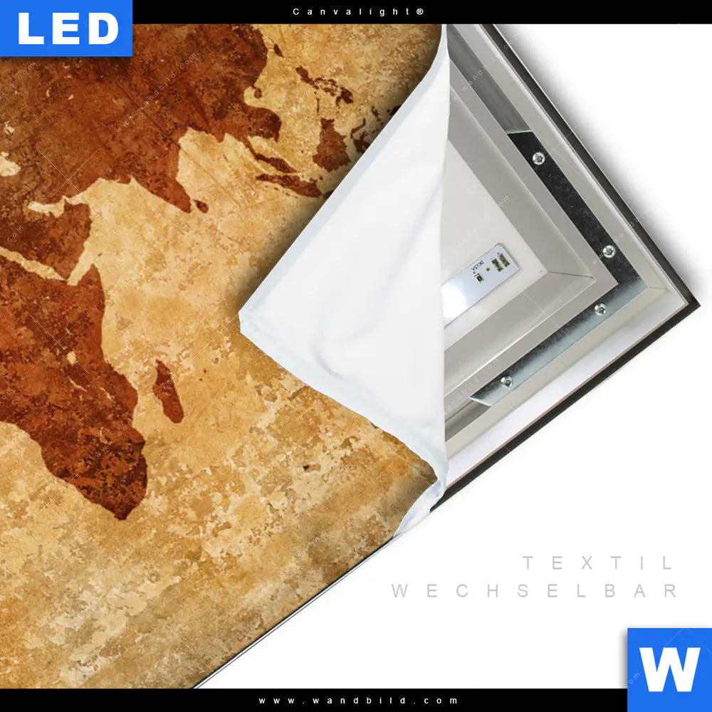 LED-Textilrahmen-Bild mit austauschbarem Karten Textil-Druck (Wechselbild)