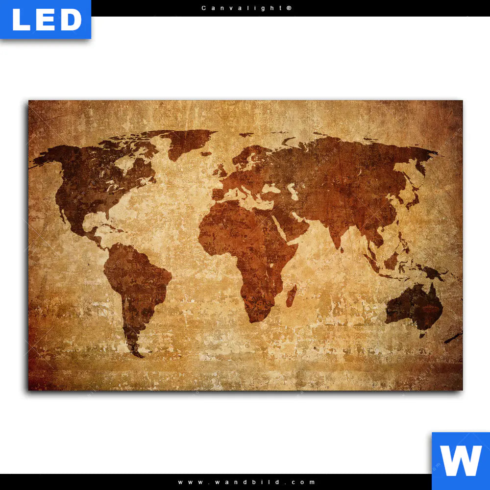 Canvalight® Leuchtbild | Weltkarte Rostoptik | Querformat