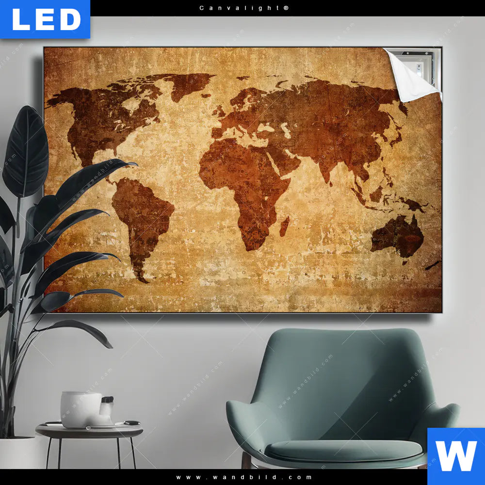 Canvalight® TEX Leuchtbild | Weltkarte Rostoptik | Querformat