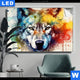 Canvalight® TEX Leuchtbild | Wolf mit bunten Farbspritzern No. 2 | Quadrat