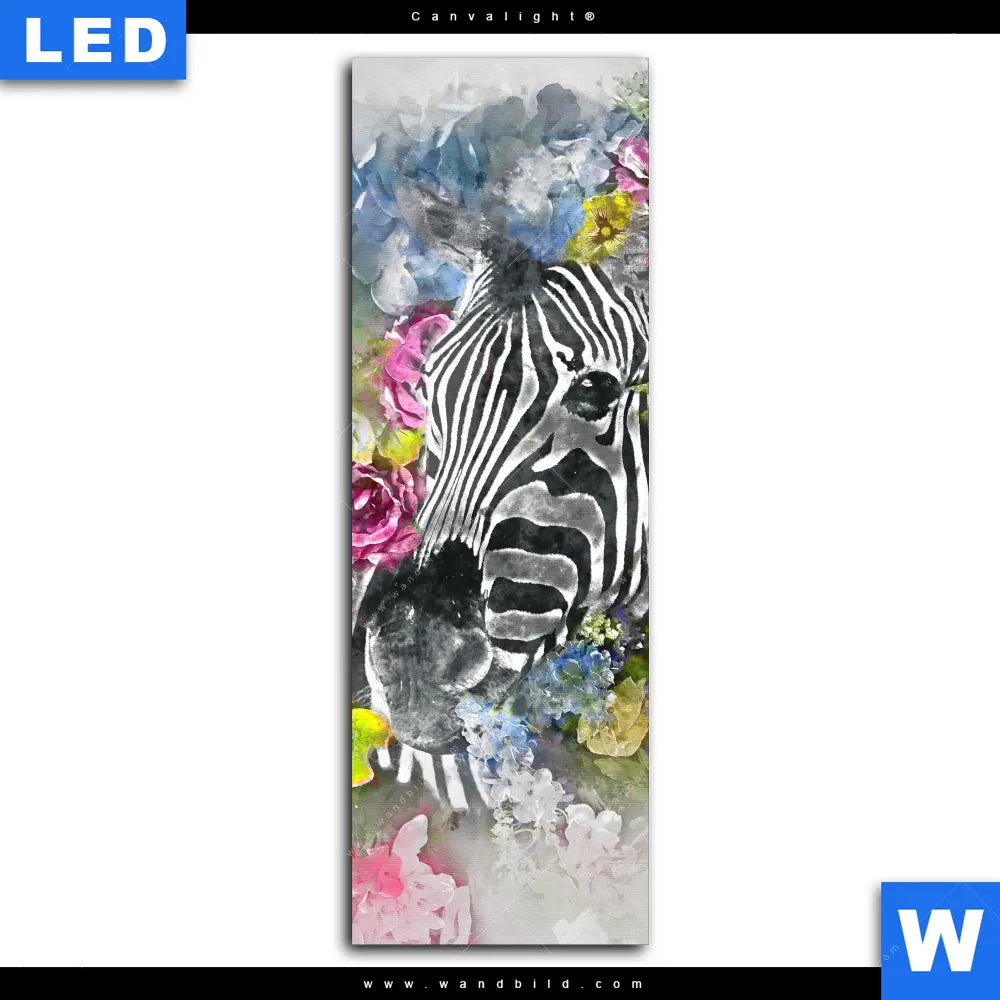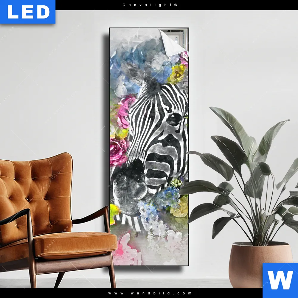 Canvalight® TEX Leuchtbild | Zebra & Blumen | Schmal