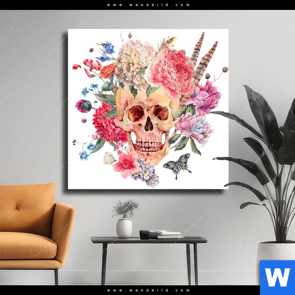 Leinwandbild | Schädel im Boho Stil | Quadrat