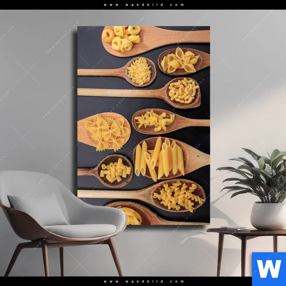 Leinwandbild | Pasta auf Löffeln | Hochformat