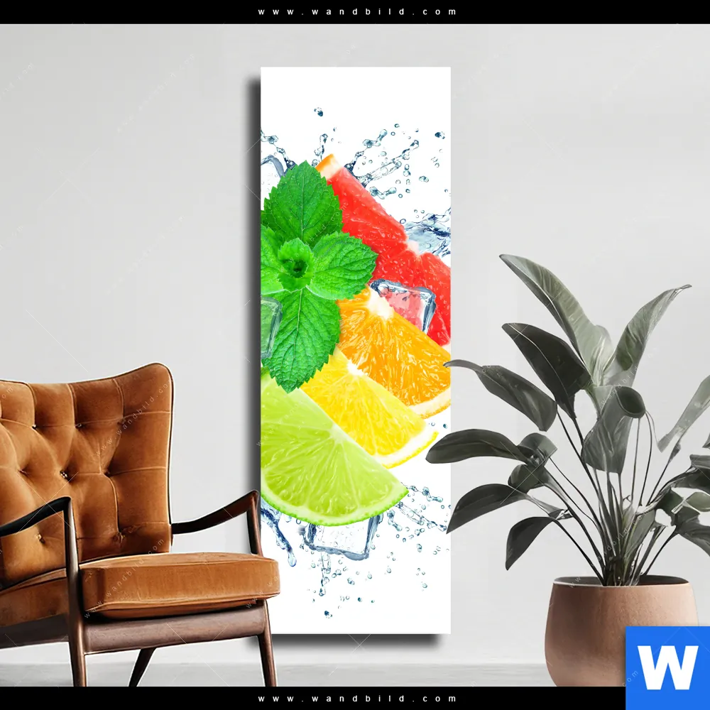 Leinwandbild | Zitrusfrüchte auf Eis | Schmal