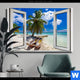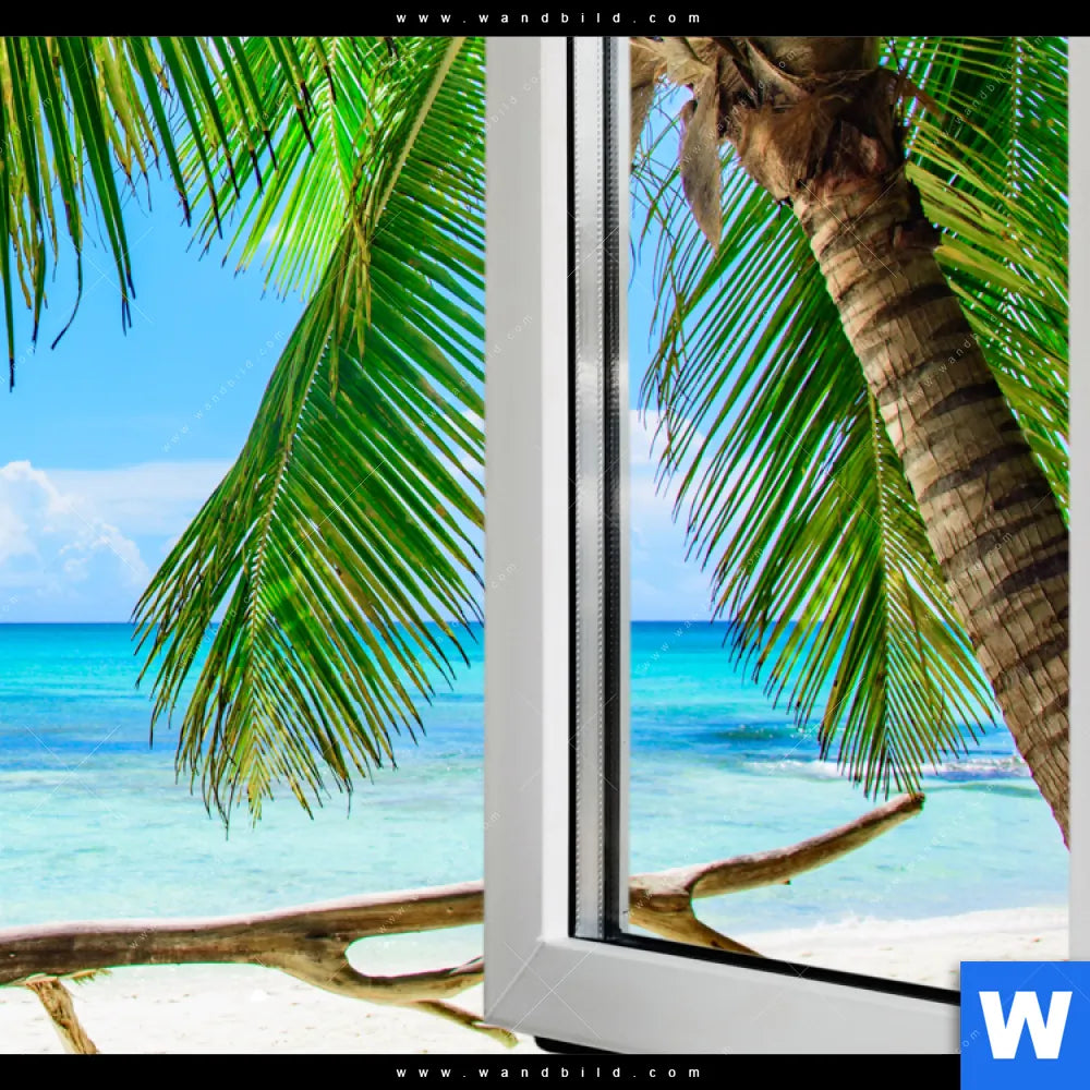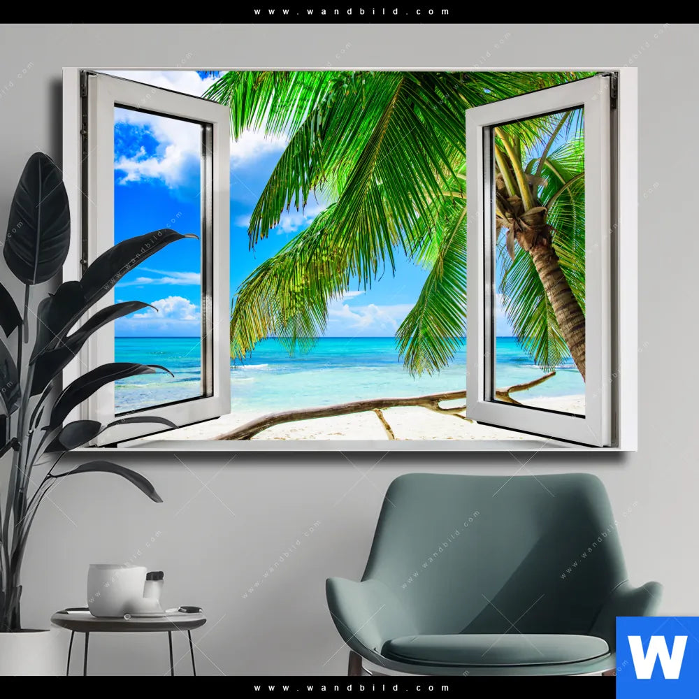 Leinwandbild | Fensterblick Karibik Palme | Querformat