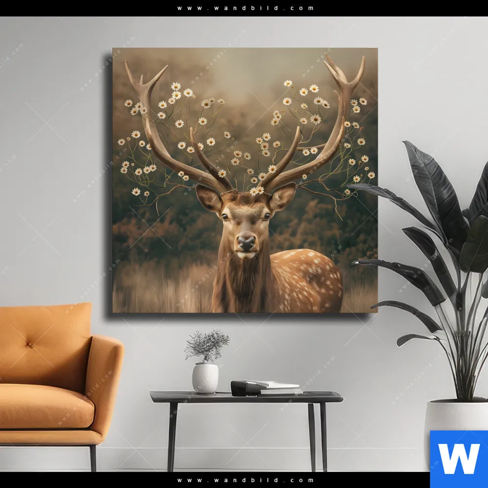 Leinwandbild | Magischer Hirsch im Waldrand | Quadrat