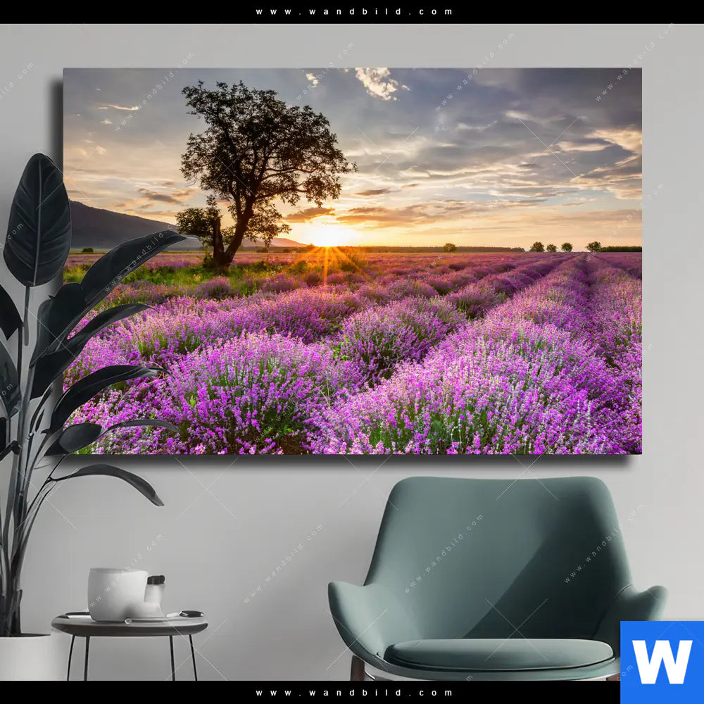Leinwandbild | Sonnenaufgang im Lavendelfeld | Querformat
