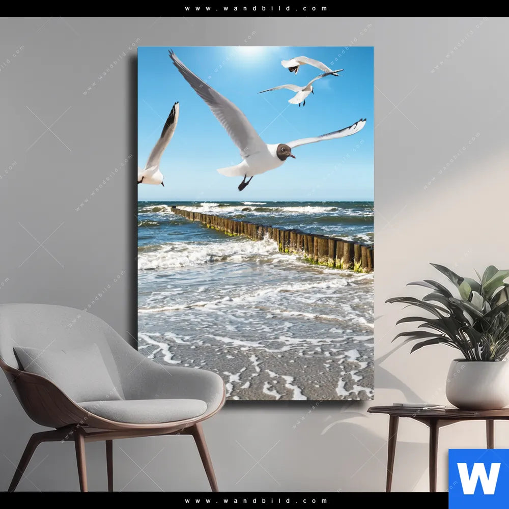 Leinwandbild | Ostseeküste & Möwen | Hochformat