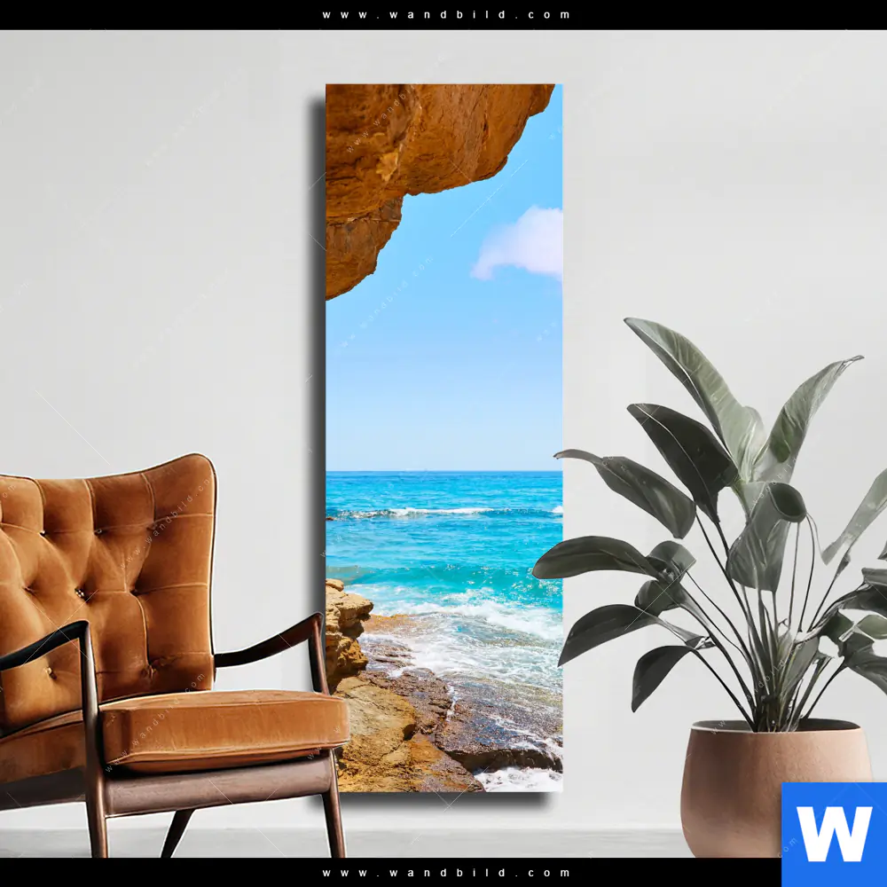 Leinwandbild | Wellenrauschen und Felsenklippe | Schmal