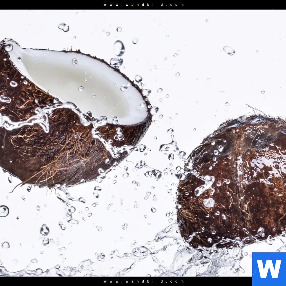 Leinwandbild | Kokosnüsse mit Wasserspritzer | Quadrat
