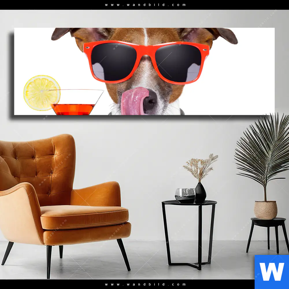 Leinwandbild | Lustiger Hund mit Drink | Panorama