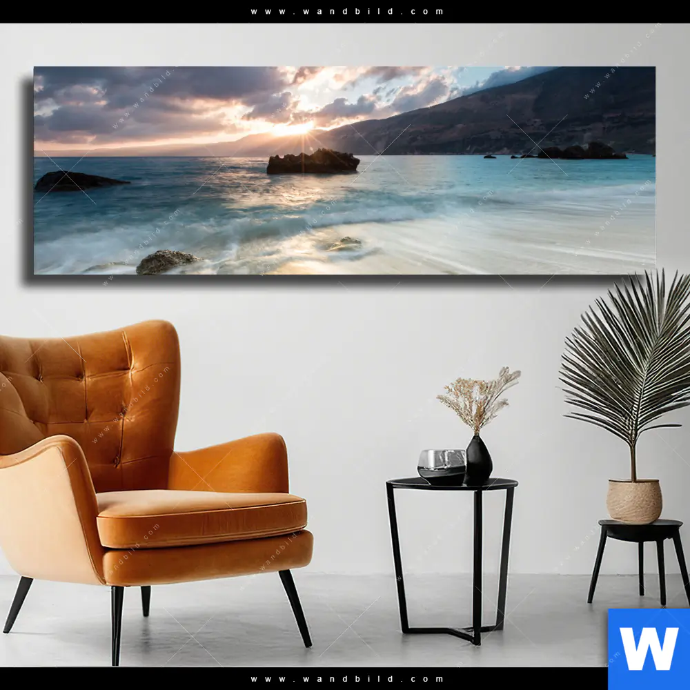 Leinwandbild | Meeresrauschen bei Sonnenuntergang | Panorama