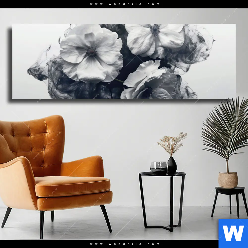 Leinwandbild | Blumen im schwarzen Farbnebel | Panorama