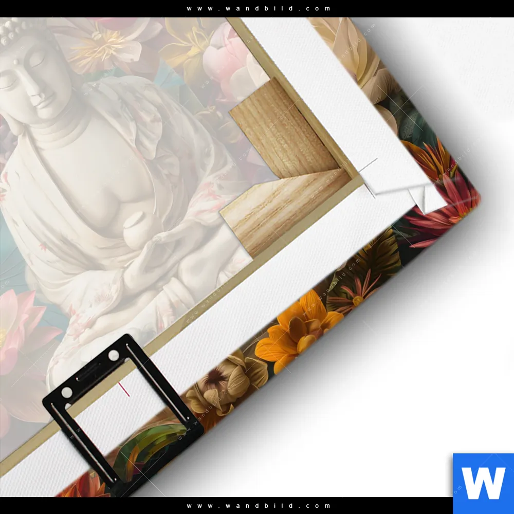 Buddha - Feng Shui, Blumen - Botanik Fotoleinwand aufgespannt auf Holz-Keilrahmen